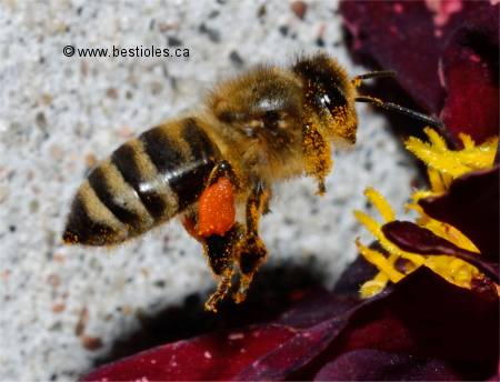 Le pollen va dans le sac orange sur les pattes arrières