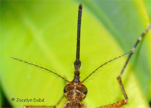 On peut les reconnaître par leurs longues pattes, les antennes qui portent des filaments comme des épines, et le long bec mince et pointu comme un dard qui leur sert à piquer leurs proies. Le corps fait de trois parties porte une petite tête avec de grands yeux composés. Le thorax est plus volumineux que l'abdomen mince et allongé.